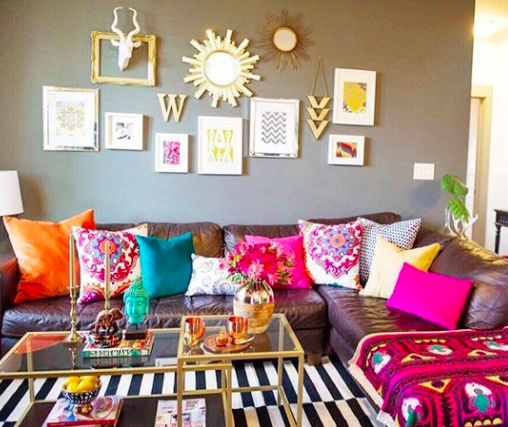 In a bohemian styled home, you’re likely to see hung tapestries, mixed patterns, jewel tones like purples and oranges, tassels, pillows (everywhere!) and anything ornate!